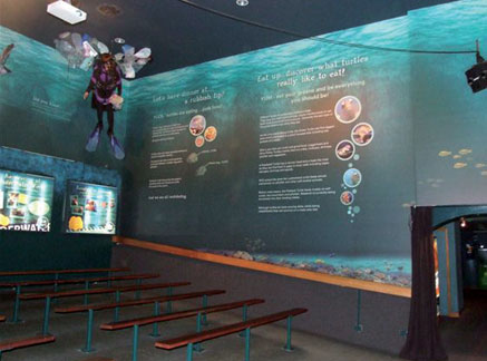 We developed a concept to transform the existing theatrette and recovery pool into a more immersive contact and educational experience for visitors incorporating graphics, new signage and interps, 3D displays and new lighting.